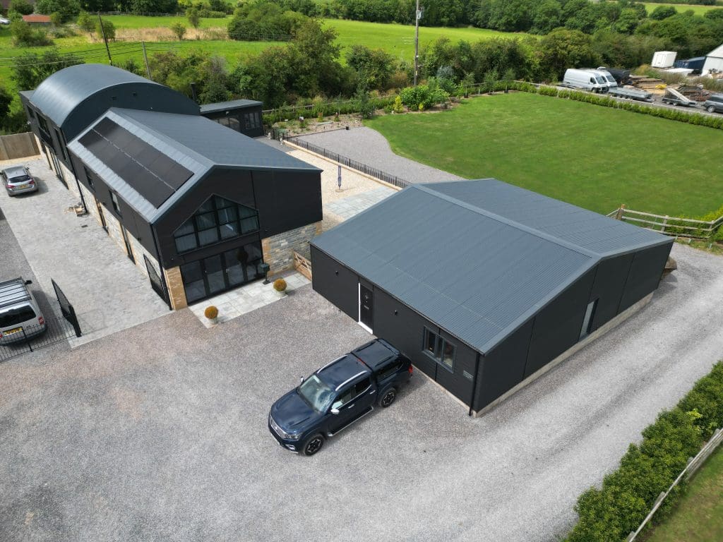 The outer layer consisted of Ash & Lacy 13.5 corrugated profile sheets, chosen for their traditional agricultural look and solid weather resistance. Low-profile fixings were used throughout, not only for performance but also to keep the visual finish clean.