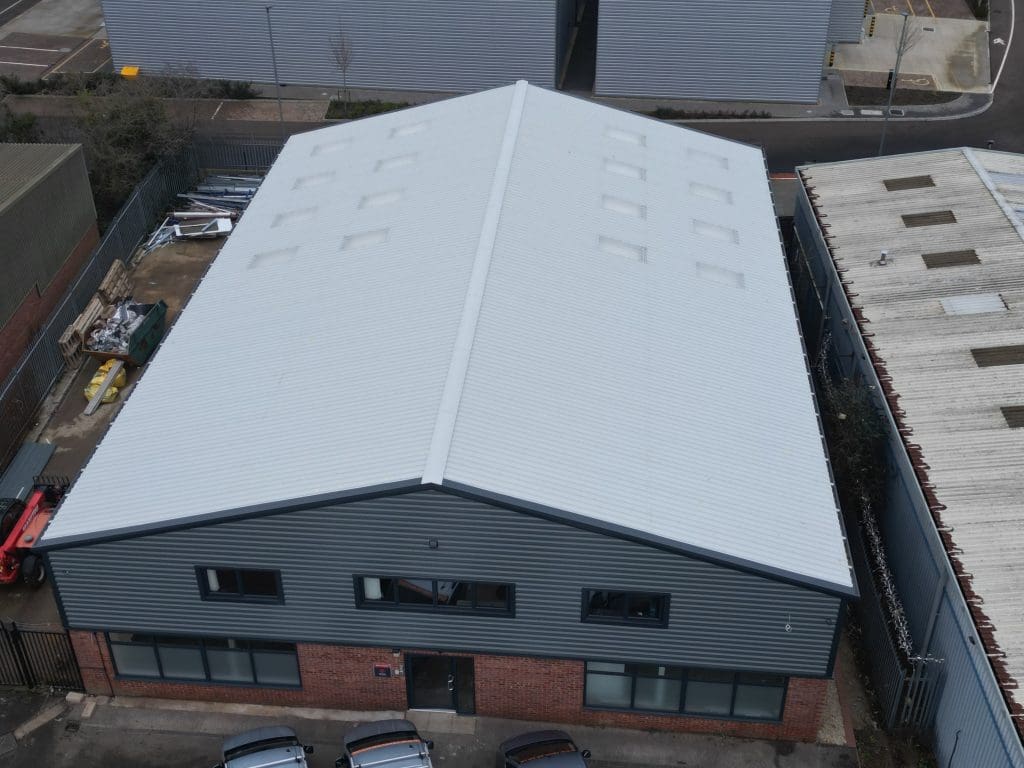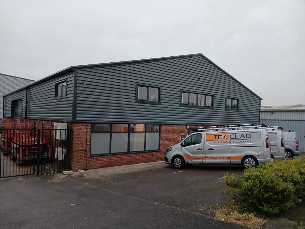 Tek Clad installed a full over-cladding system to the existing metal roof, complete with new insulation to meet current building standards and high-performance roof lights to improve natural light inside. Two elevations of the building were also over-clad with new panels, and flashings, gutters and downpipes were installed to finish the transformation.