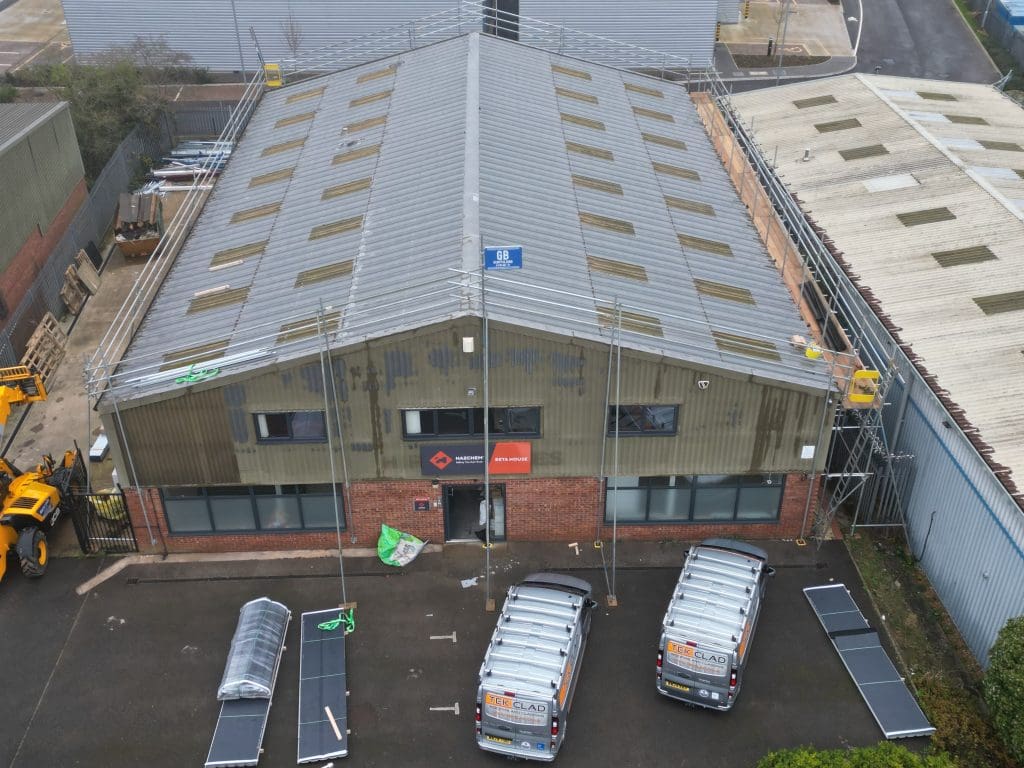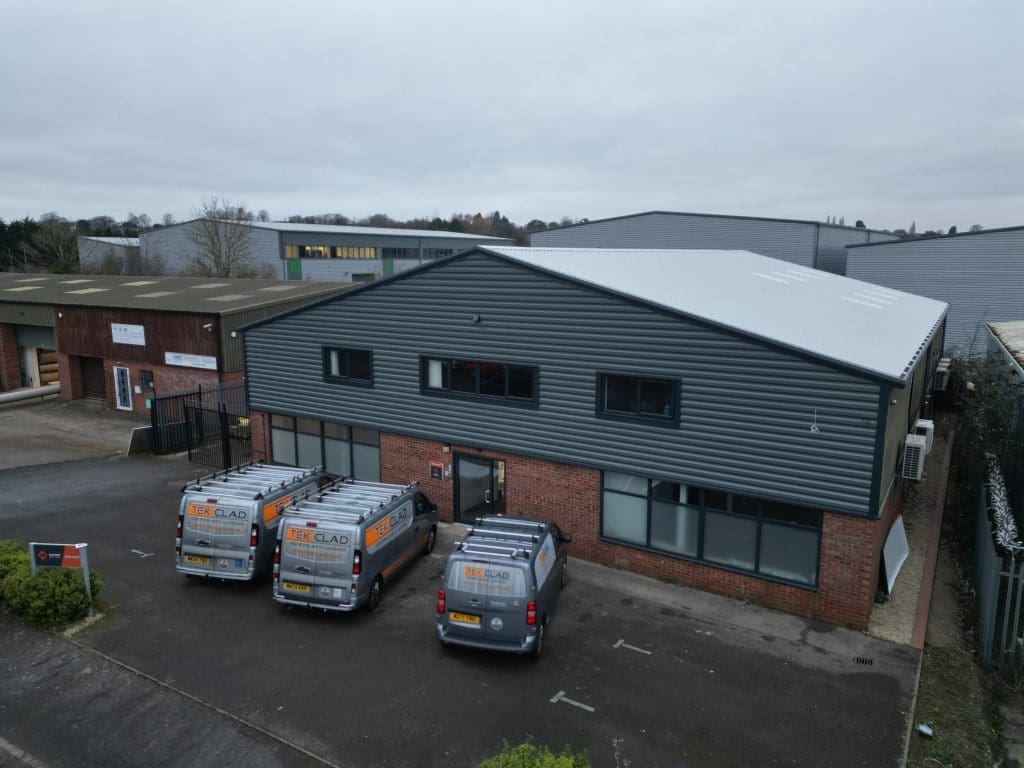 Pug1Off reached out to Tek Clad to refurbish their existing building, which had become run down, dated, and in need of improvement. The work included over-cladding the roof to improve insulation and energy efficiency, replacing roof lights, and updating two elevations of the building to create a fresh, modern appearance. The goal was to transform the look and feel of the workshop, shop, store and reception area while boosting performance and bringing the structure in line with modern building regulations.